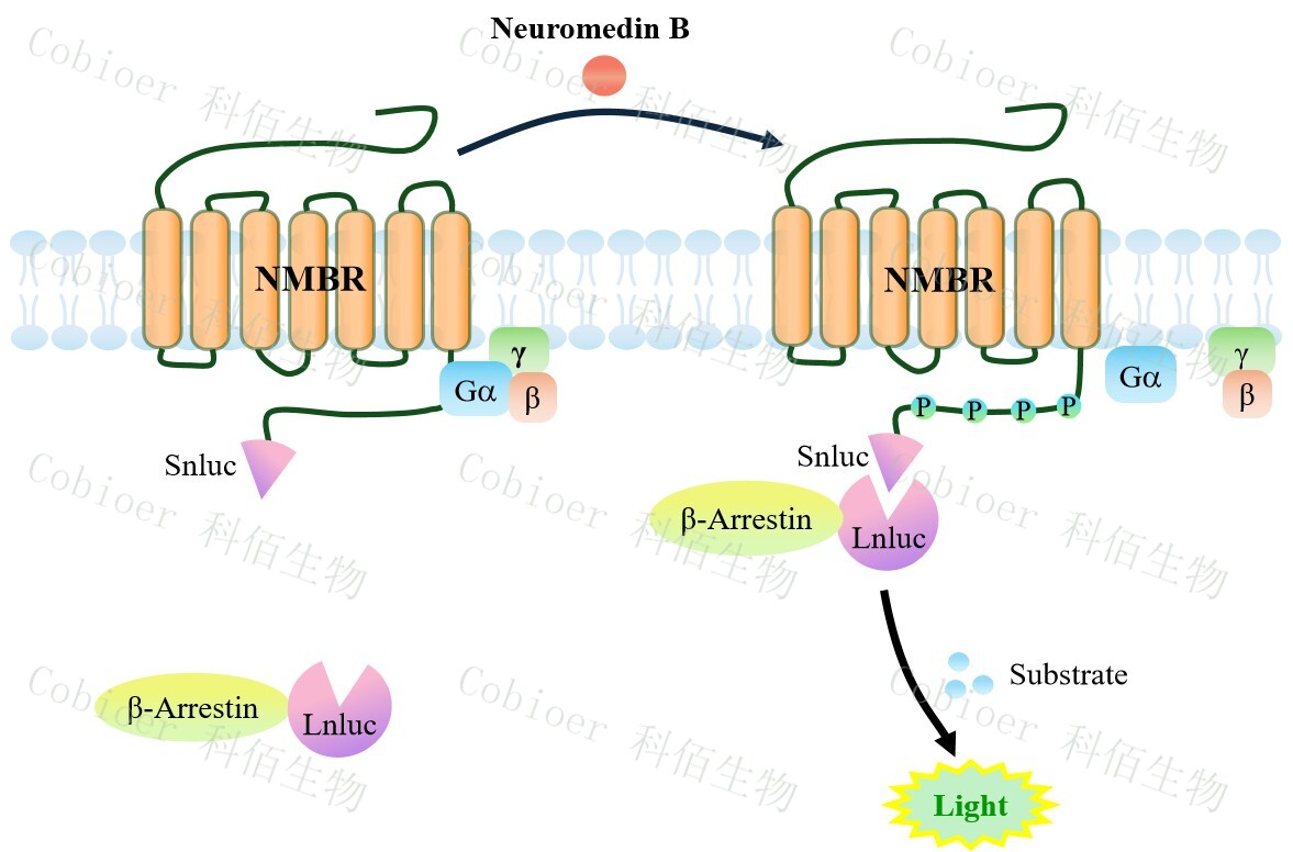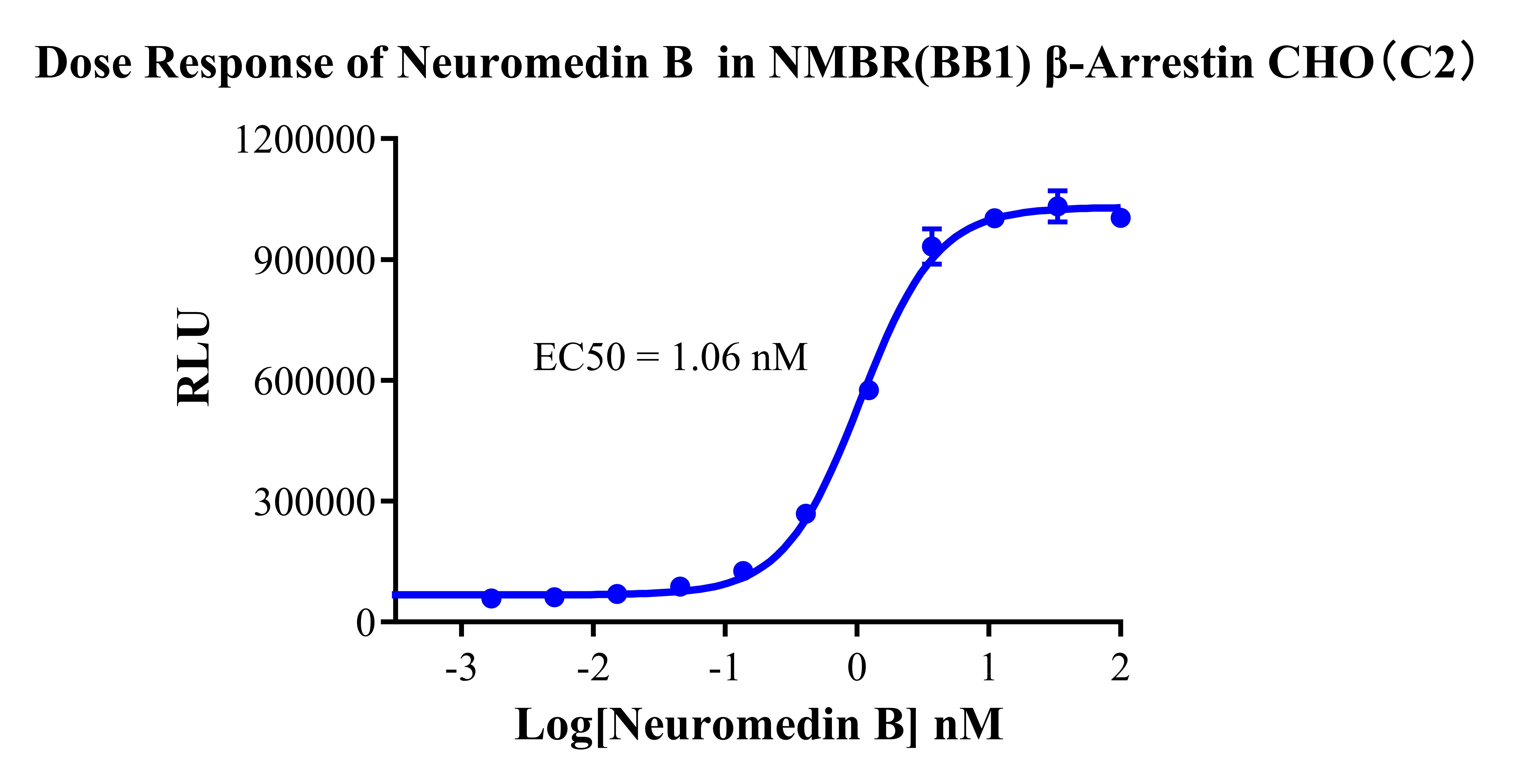 NMBR(BB1) β-Arrestin CHO 報(bào)告基因藥靶模型很好的模擬了體內(nèi) NMBR/β-Arrestin 的信號(hào)轉(zhuǎn)導(dǎo)過程,原理見下圖所示。當(dāng)缺乏配體刺激時(shí),β-Arrestin 不與 NMBR 結(jié)合,融合β- Arrestin 的熒光素酶處于失活構(gòu)象,當(dāng) NMBR 遭遇配體刺激時(shí),融合熒光素酶報(bào)告基因的 β-Arrestin 被招募,使熒光素酶報(bào)告基因處于激活狀態(tài),加入其底物后發(fā)光信號(hào)增強(qiáng)。![]() Figure 1. NMBR(BB1) β-Arrestin CHO 細(xì)胞模型原理圖  |
