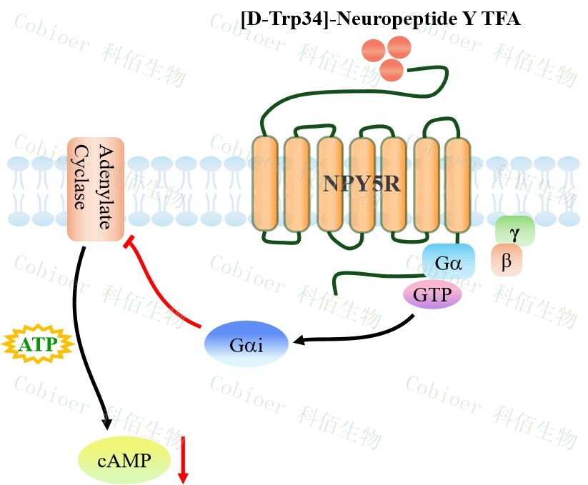 神經(jīng)肽 Y(NPY)作為一種重要的神經(jīng)遞質(zhì),廣泛分布于脊椎動物的中樞神經(jīng)系統(tǒng)和 周圍神經(jīng)系統(tǒng)。通過與不同的亞型受體結(jié)合,NPY 激活信號轉(zhuǎn)導(dǎo)通路,從而調(diào)節(jié)攝食 、能 量平衡、焦慮、晝夜節(jié)律和其他生理過程。NPY 受體(NPYR)屬于 G 蛋白偶聯(lián)受體家族, 目前在哺乳動物中已鑒定出 5 種受體基因亞型,即 NPY1R、NPY2R、NPY4R、NPY5R 和 NPY6R。 NPY5R 主要響應(yīng)內(nèi)源性配體神經(jīng)肽 Y(NPY)、肽 YY(PYY)及胰腺多肽(PP), 通過偶聯(lián) Gi/o 蛋白抑制腺苷酸環(huán)化酶活性、降低細胞內(nèi) cAMP 水平,同時激活 MAPK/ ERK 通路并動員鈣離子信號,在下丘腦攝食中樞、情緒調(diào)節(jié)環(huán)路及能量代謝網(wǎng)絡(luò)中發(fā)揮核 心作用,其異常活化與肥胖、糖尿病及情緒障礙密切相關(guān)。  |