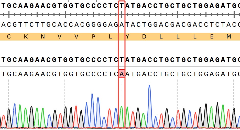 Figure 2. Sanger of ESR1[Y537N](Homozygous,AF%:100) Isogenic MCF7.