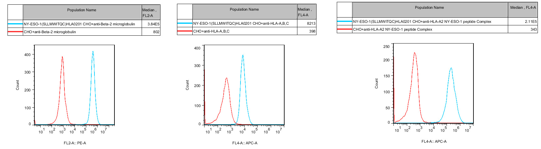 IV. Representative Data![]() Figure 1. Recombinant NY-ESO-1(SLLMWITQC)HLA0201 CHO stably expressing NY-ESO-1(SLLMWITQC)HLA0201. |