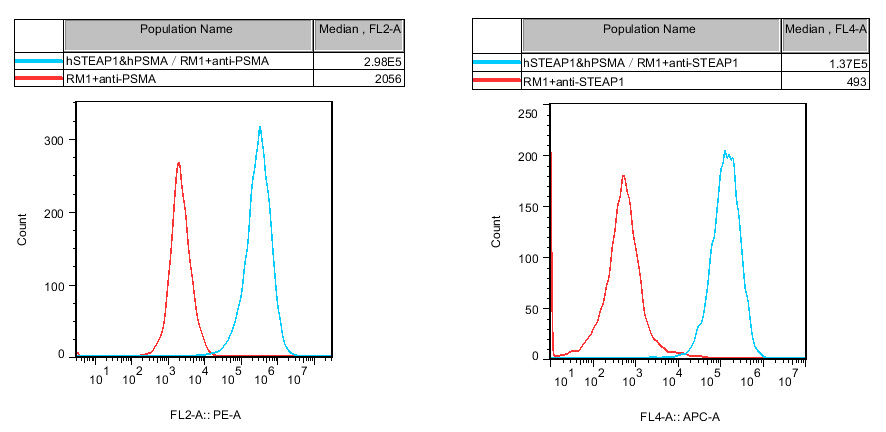 Figure 1. Recombinant hSTEAP1&hPSMA/RM1 stably expressing hSTEAP1&hPSMA. |