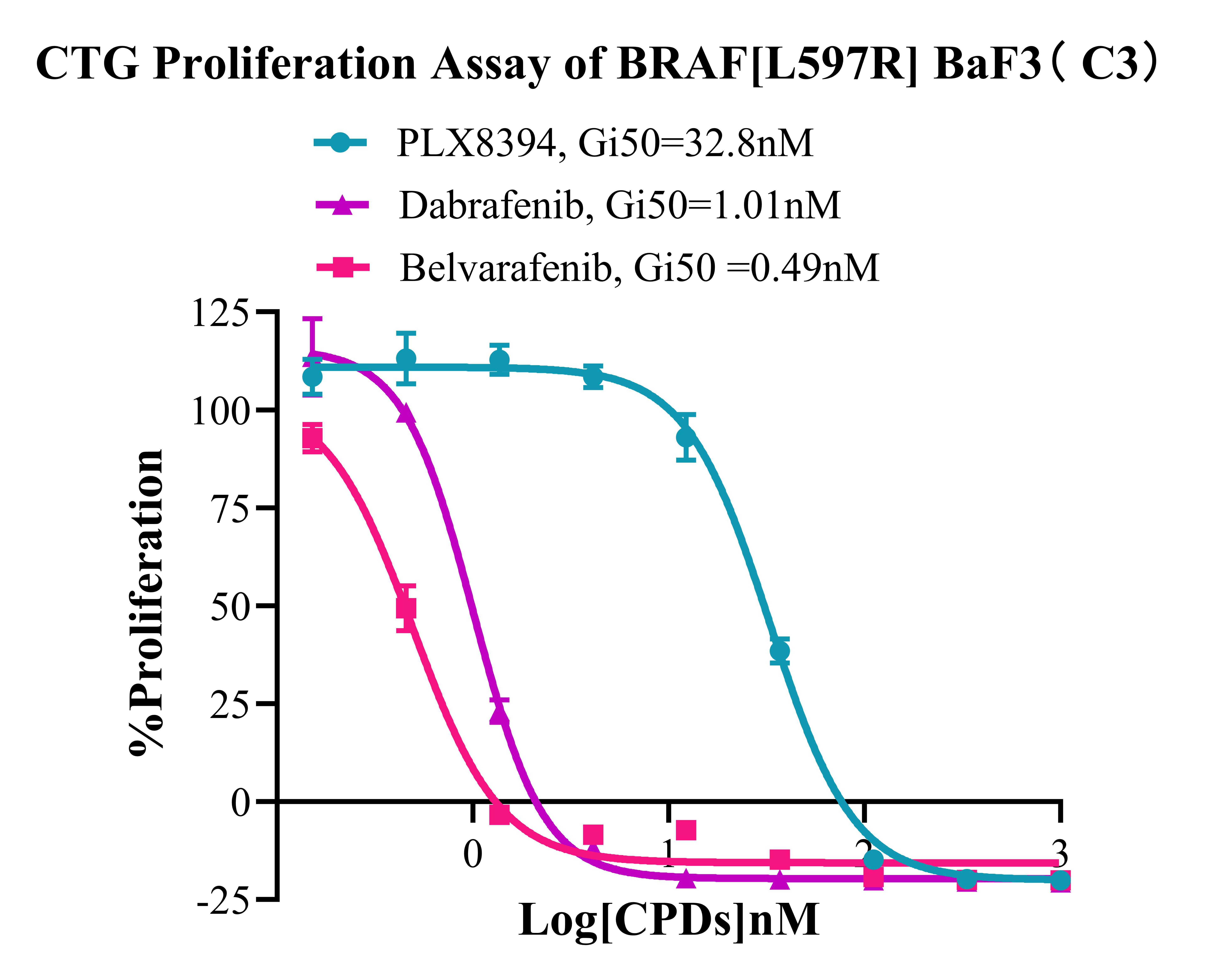 Figure 4. CTG Proliferation Assay of BRAF [L597R] BaF3 (C3). |