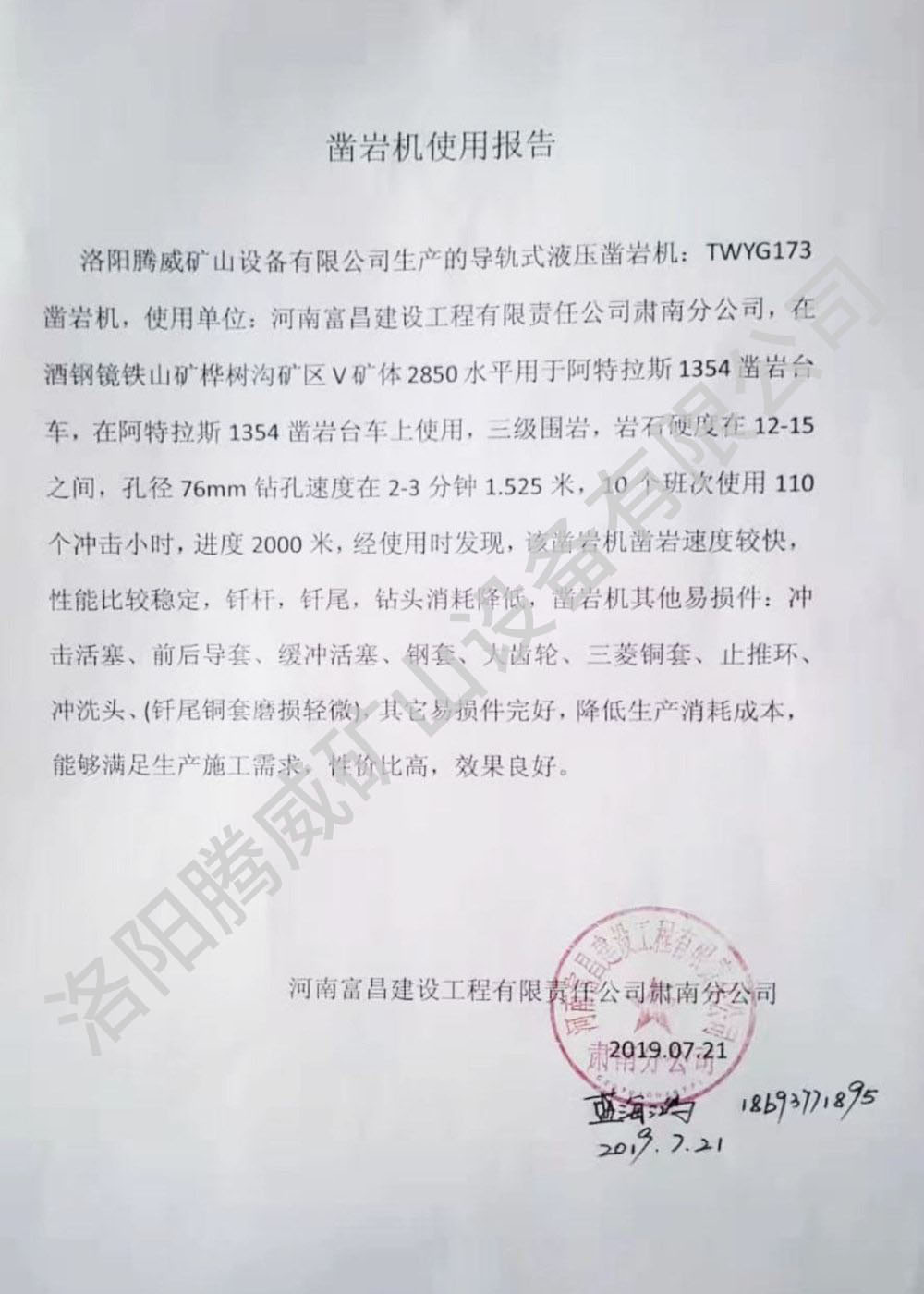 TWYG173導(dǎo)軌式液壓鑿巖機(jī)技術(shù)參數(shù)